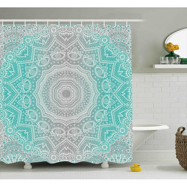 Grey and Turquoise Shower Curtain by , Primitive Spiritual ... from i5.walmartimages.com See more ideas about shower curtain hooks, shower curtain, shower curtain decor. Shop for turquoise shower curtains at bed bath & beyond. Great designs on professionally printed shower curtains. Colour size x clear all. A beautiful, turquoise shower hook in a cross shape. Cleanliness just got more creative. Ambesonne turquoise shower curtain set, abstract paisley floral flowers pattern waterdrops design aquatic art illustration, bathroom decor set with hooks, 69w x 70l inches, white. Shop shower curtains and shower curtain hooks from at home.